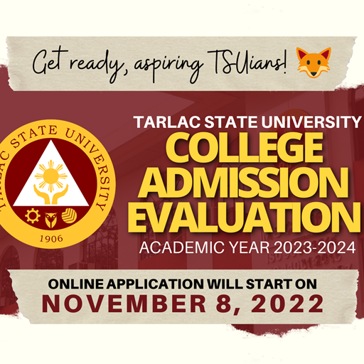 The online application for the Tarlac State University College Admission Evaluation or TSU-CAE will start on November 8, 2022 (Tuesday) until December 30, 2022 (Friday).