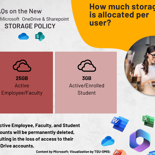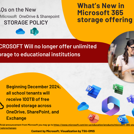 Due to these changes to the Microsoft 365 pooled storage policy for educational institutions, all students, faculty, and personnel are encouraged to check how much data storage they are using and safeguard important files by downloading them before July 2025.