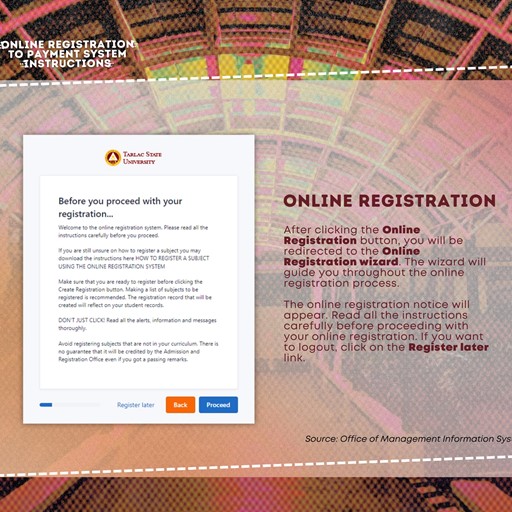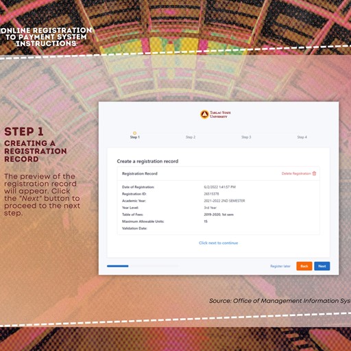 See this post for the steps: https://www.facebook.com/TarlacStateU/posts/pfbid037aC9QLntsVc2iMBZyiKmiqeZDY9biB4mvcru17YoGZf6DB9r7zWumKKWR5owrpoyl