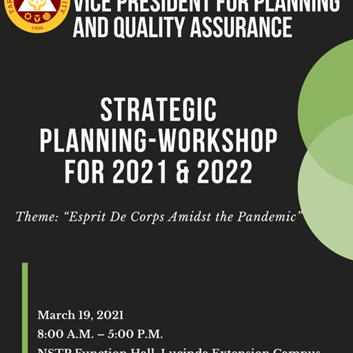 The Tarlac State University (TSU) Vice President for Planning and Quality Assurance office successfully conducted its Strategic Planning-Workshop for 2021-2022 at the NSTP Function Hall, Lucinda Extension Campus on March 19, 2021 with the theme, Esprit the Corps Amidst the Pandemic. Directors, unite heads and staff under the VPPPQAO attended the said event and shared their plans and targets for 2021-2022.